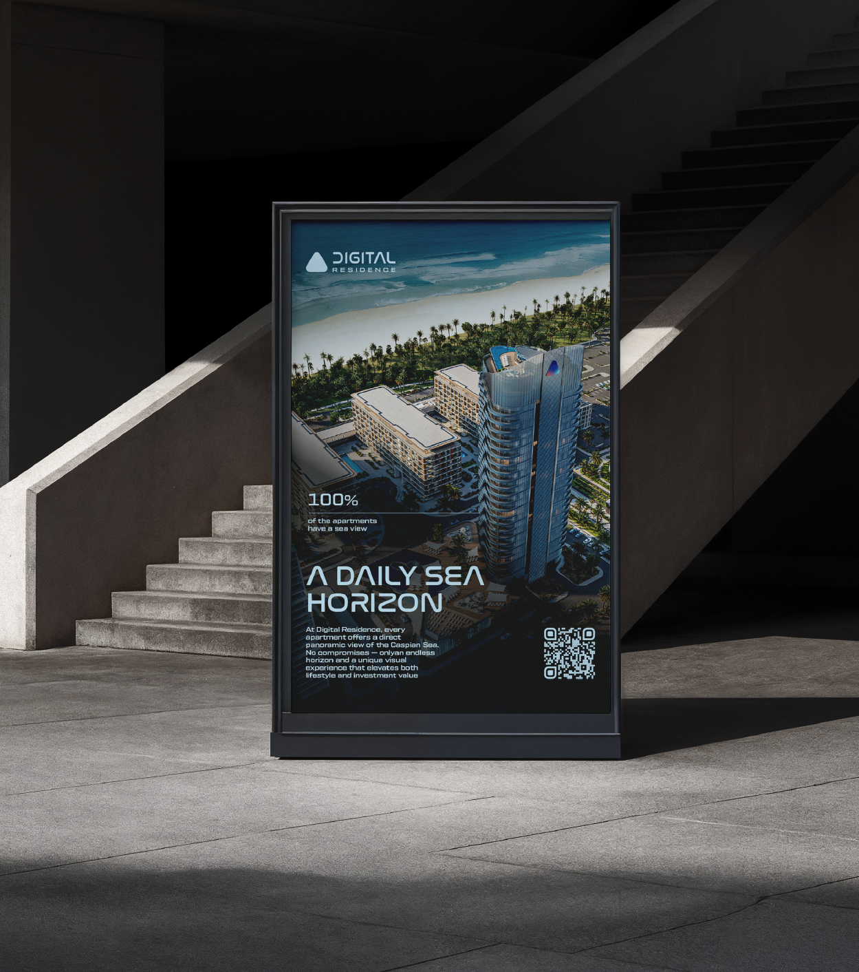 Digital Residence is a next-generation technological residence located within Sea Breeze (Azerbaijan). The project brings together residential apartments, business spaces, and a community for IT, creative, and investment audiences. The brand concept is based on the integration of architecture, innovation, and modern lifestyle into a single, thoughtfully designed system.