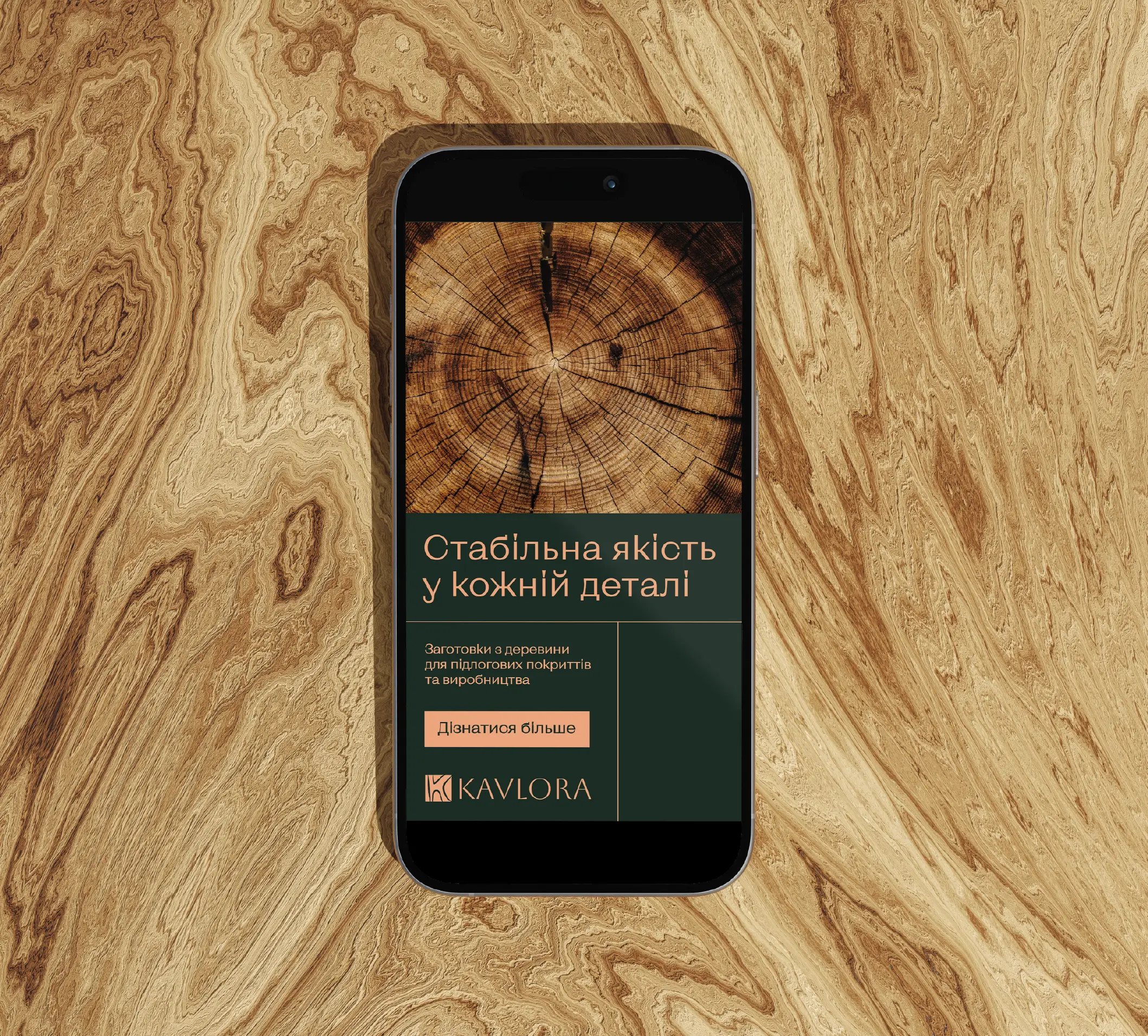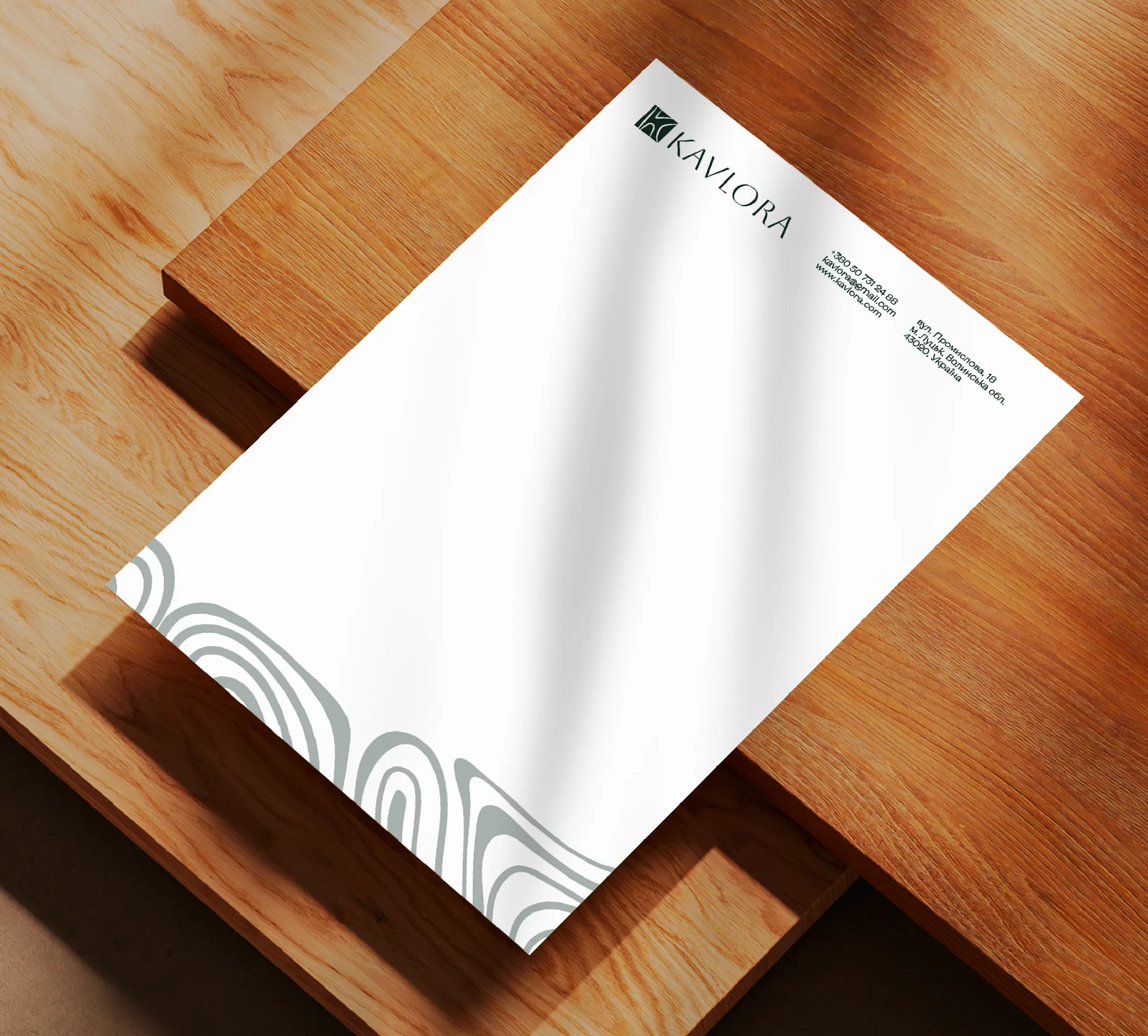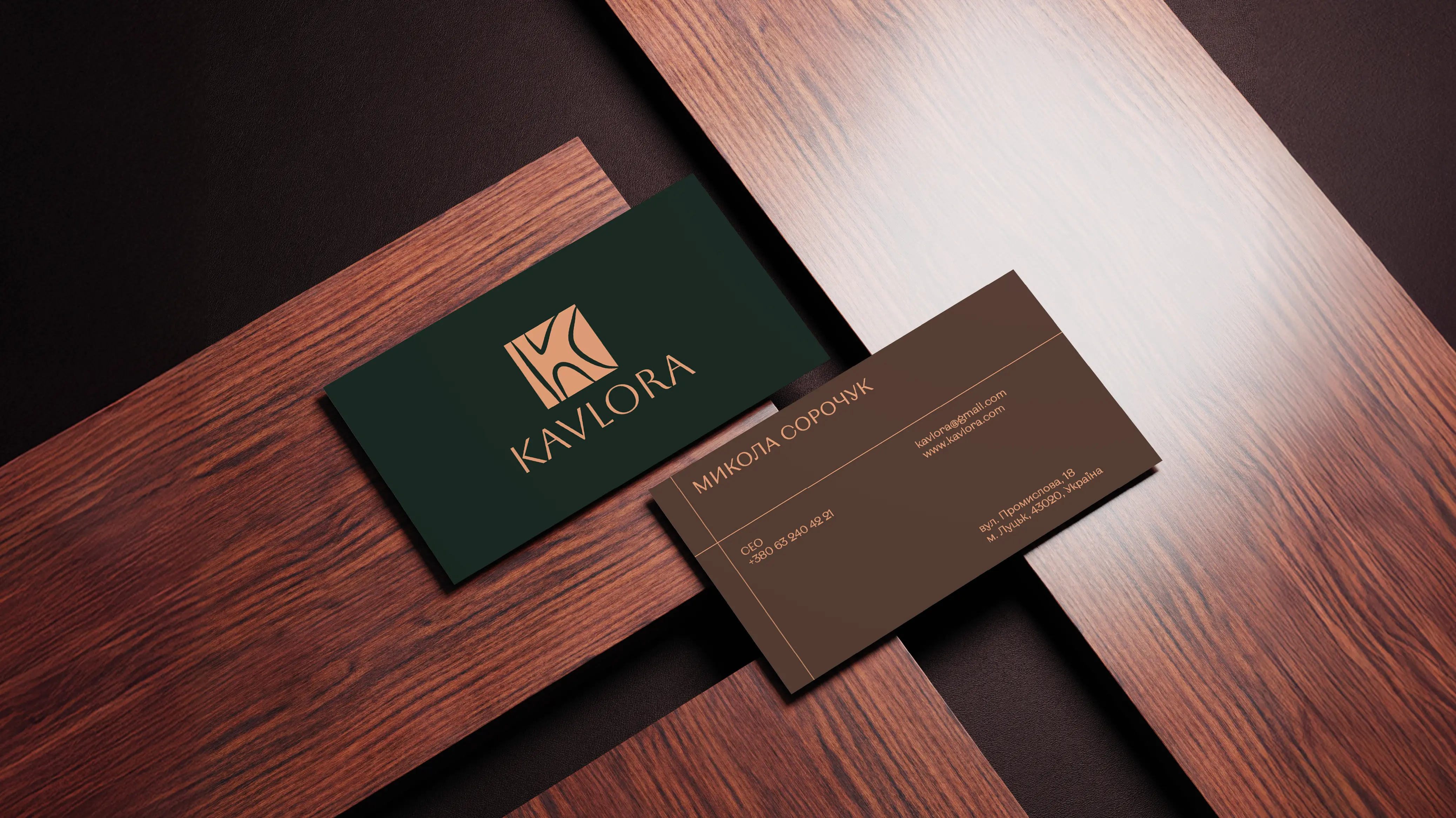 Брендинг у цій сфері — це не лише про естетику, а про довіру до якості продукту. Ми розробили комплексну айдентику для Kavlora, яка включає логотип, кольори, шрифти та графічні елементи, що легко масштабуються на різні носії. Візуальна система була впроваджена у веб-банери, візитку, фірмовий бланк, вивіску, а також брендований одяг — кепки та футболки.